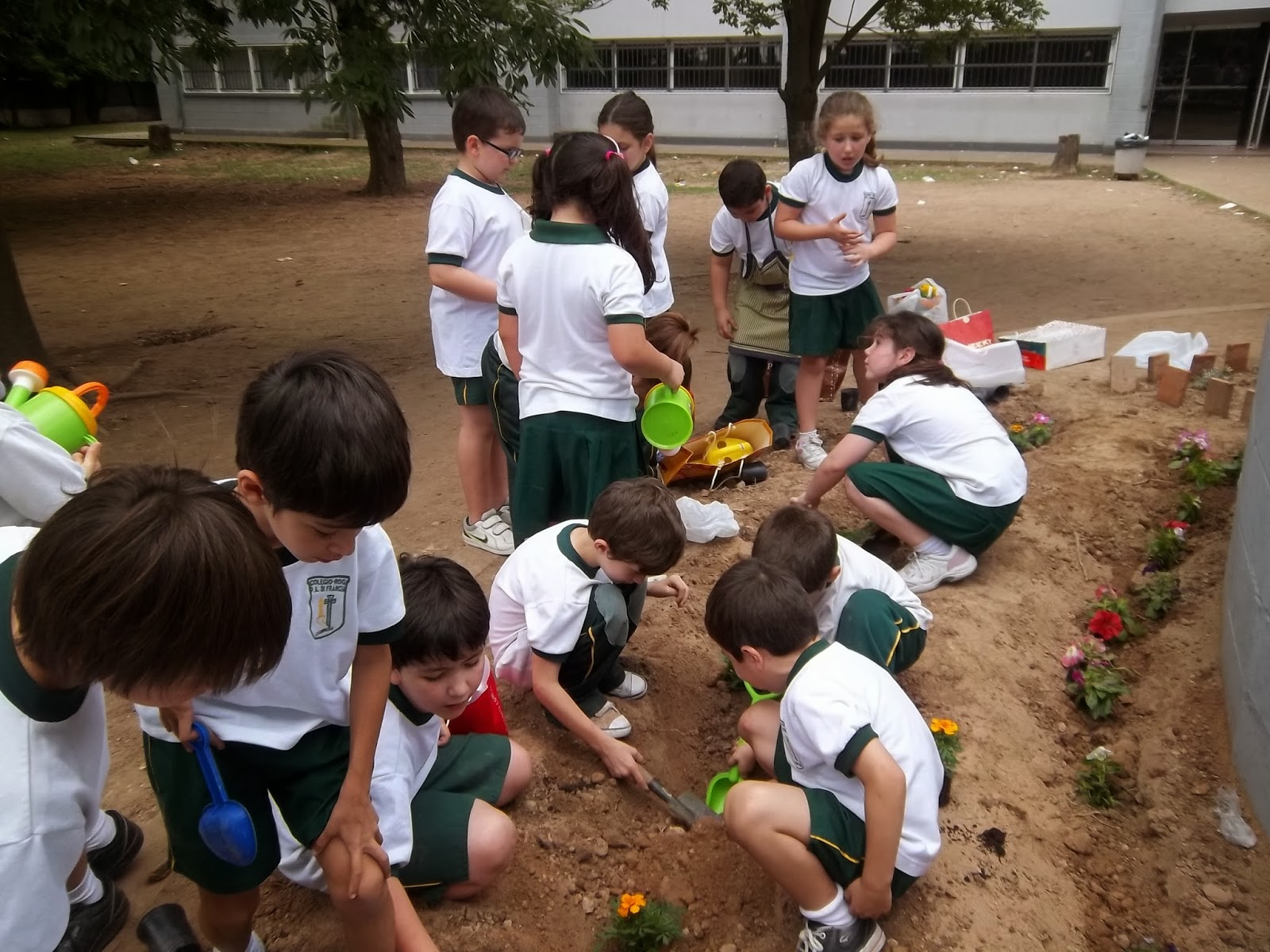 Después de la visita al vivero que dio cierre al proyecto "Mundo de plantas", los nenes de primer año plantaron los plantines traídos en el cantero que rodea nuestro patio de Banderas.